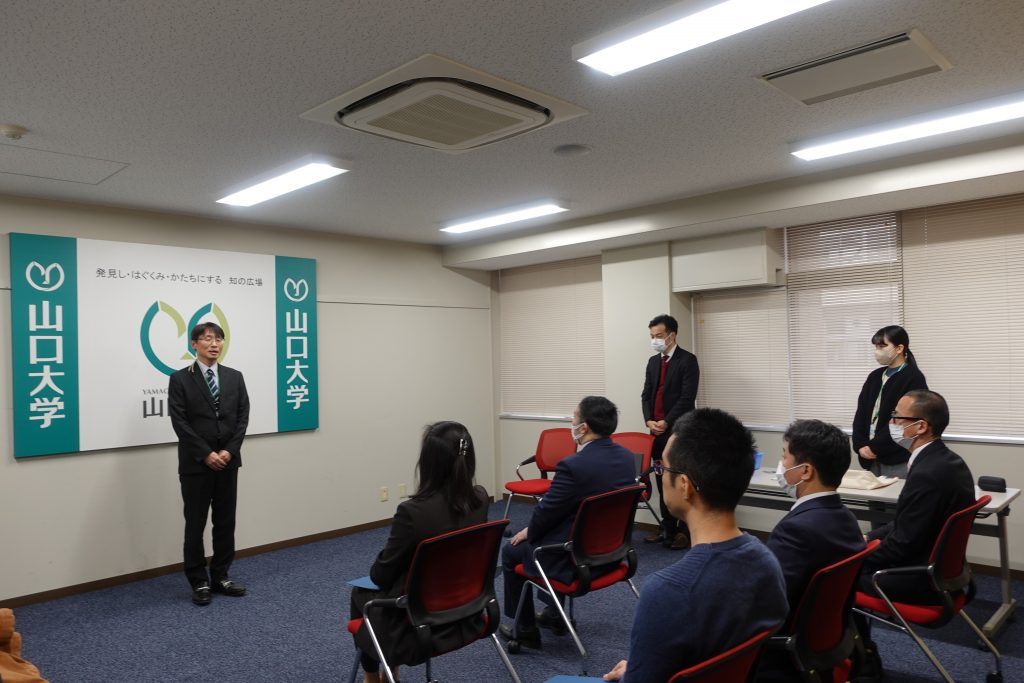 令和7年2月28日(金)山口大学 情報・データ科学教育センターにおける履修証明プログラム「データサイエンス技術マスター講座」の履修証明書・受講証授与式を行いました。修了者12名のうち、4名が出席し、履修証明書を授与しました。また、本講座は、本学の学生も受講しており、修了生4名のうち、1名が出席し、受講証を授与しました。